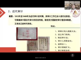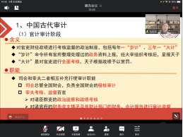 2022年5月20日下午14:30,河北地质大学冯丽丽教授为审计学专业的师生做了《审计的历史、现状和未来的》学术专题讲座。本次报告以审计学的发展为主线,冯丽丽教授结合自身的实践经验和研究成果,理论联系实际,首先从中国古代至今审计的发展历程(以管仲、刘洪举例)入手,接着讲述了西方现代审计的发展历史和发展历程,提出了基于会计发展制度发展的独有特点,并具体讲解审计学科发展的“六科十五道”。冯教授指出,应客观地看待审计本身独立性和重要性突出的特点,这使得审计职业本身具有其专门审计机构特色的发展必然性,也有利于审计环境的健康成长。