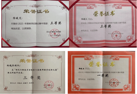 《公司战略与风险管理》教学团队的授课教师共同打磨和改进本课程的教学目标、教学体系、教学手段等内容,积极利用课程创新中的成果参与相关比赛。截至目前,本课程团队教师荣获“beat365官方网站教师说课比赛三等奖”1项、“beat365官方网站教学创新大赛”三等奖1项、“beat365官方网站教师教学创新大赛”一等奖1项、三等奖1项,并积极申报校级优质课程已完成立项。
