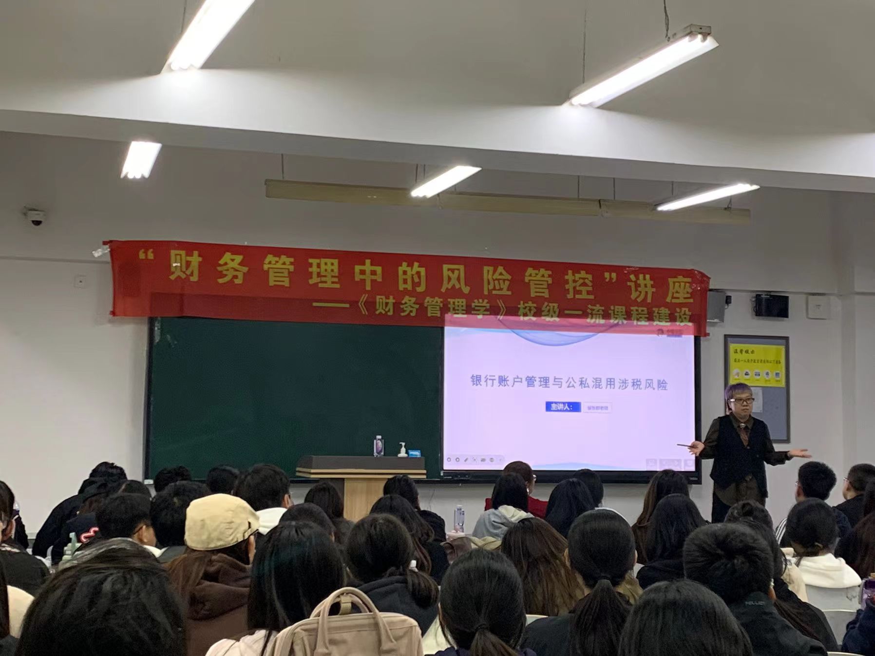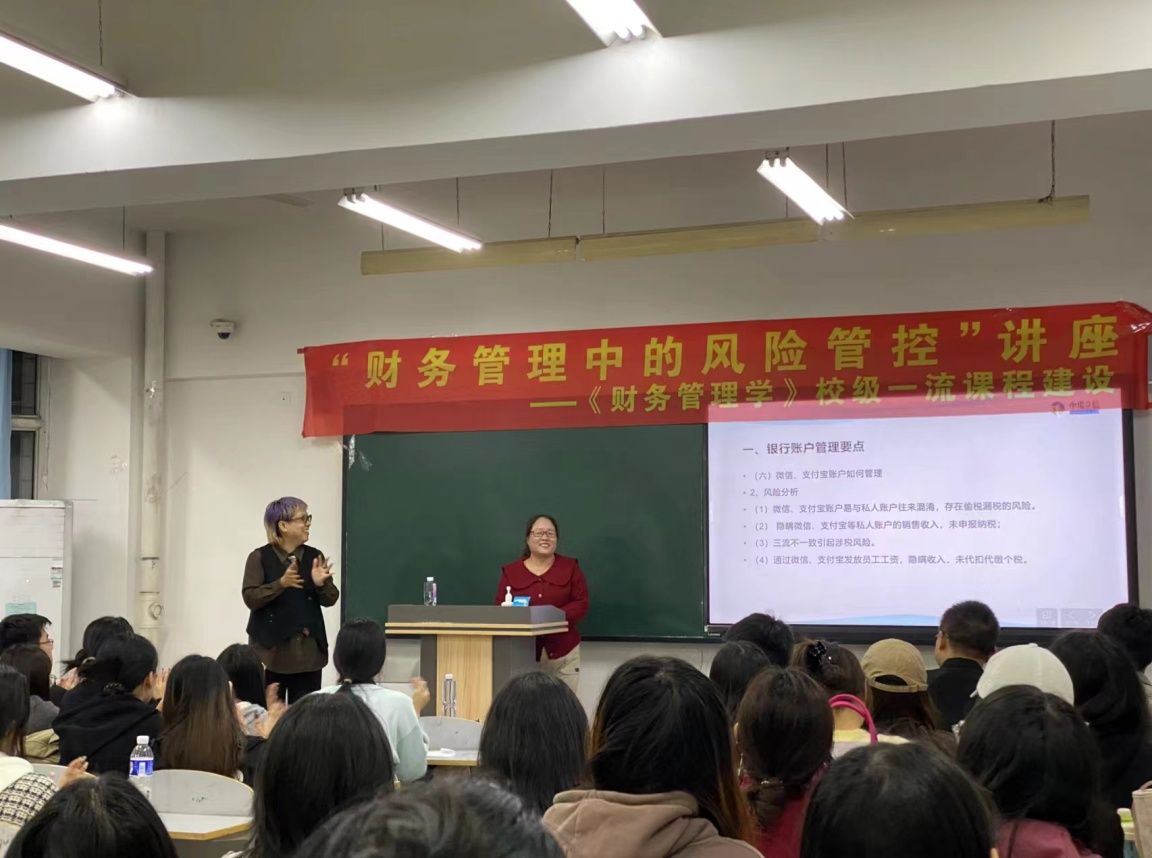 根据学校的《教学改革综合工程》,为了培养应用型财务管理、审计人才,提升学生的综合实践能力,增强学生的风险防范意识,打造《财务管理学》校级一流课程,课程组于10月24日晚上7点半在主教316教室举办了一场名为“财务管理中的风险管控”的专题讲座。