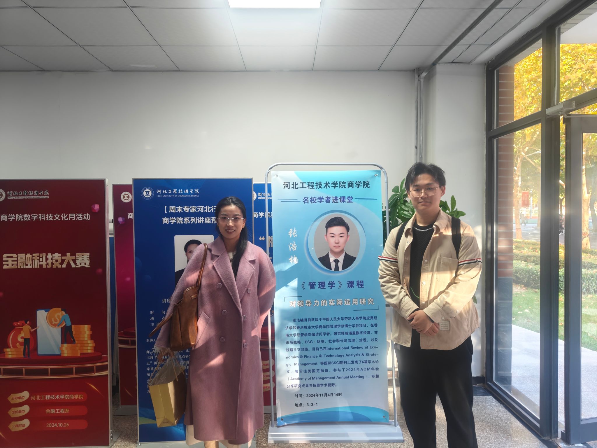 2024年11月4日,我院荣幸邀请到张浩楠博士走进《管理学》课堂,为学生讲授“领导力的实际运用研究”。学院姜玉婕副院长和王德经老师以及市场营销、金融工程专业学生聆听了本次课。本次活动不仅深化了学生对领导力的理解,更为我院《管理学》课程的改革和创新注入了新的活力。
