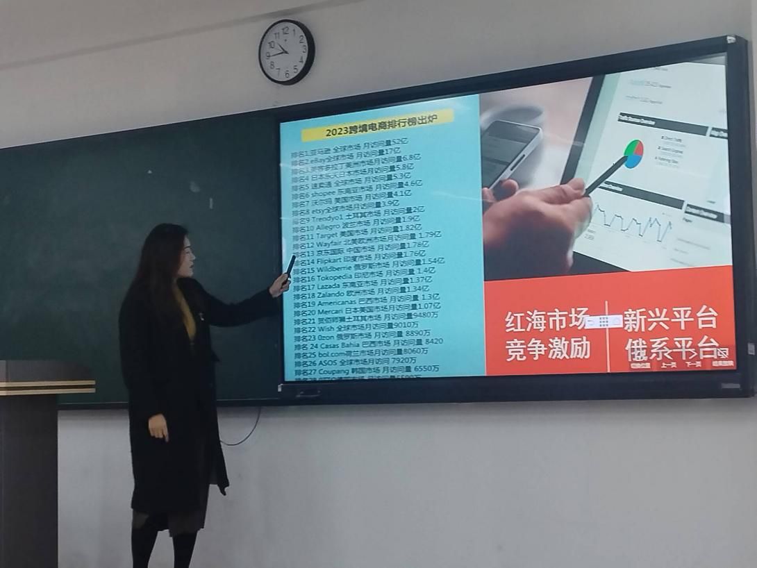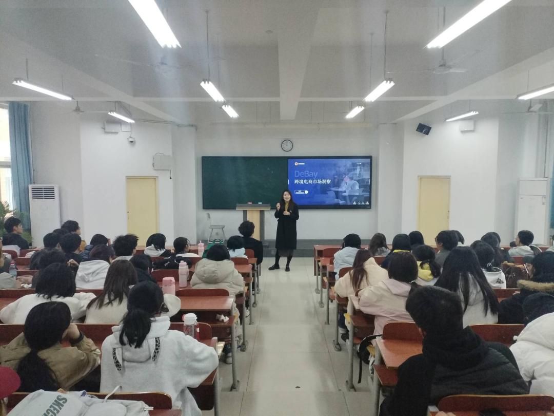 讲座伊始,主持人对杨阳女士的到来表示热烈欢迎,并向同学们介绍了杨阳女士的行业履历。杨阳是河北得贝企业管理咨询有限公司运营总监,拥有 12 年跨境电商实战经验的杨阳女士,深谙主流平台运营逻辑,在供应链整合、海外市场推广等领域有着独到见解,其丰富的行业经历让在场学生充满期待。