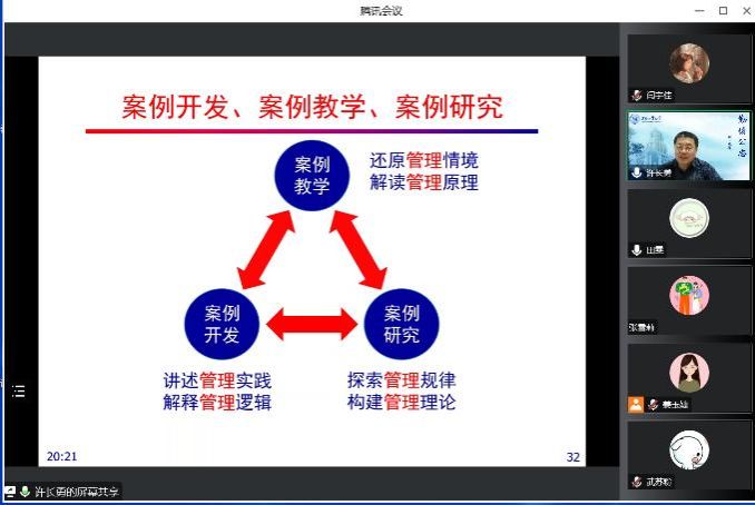 在本次讲座中,许教授从“教学案例的编写与使用方法”“如何进行案例教学”两个方面进行了分享,许教授结合自身经历,以全国百篇优秀管理案例为例,讲解了案例的开发思路;介绍了如何通过推动案例教学工作,实现知识的有效传递;并指出了案例教学的独特优势,案例教学有利于吸引学生的兴趣,通过案例分析能够提高学生的判断力和决策力。最后许教授结合自己多年案例教学的经验,向与会老师分享了案例教学的心得体会,以期为教师开展案例研究与教学提供参考借鉴。