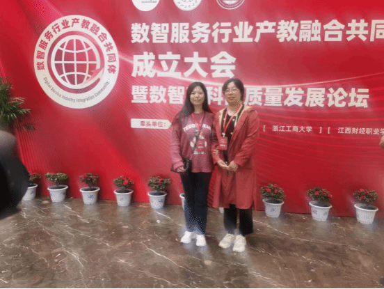 2024年4月12日,数智服务行业产教融合共同体成立大会在江西财经职业学院举行,财务管理系主任彭金媛和专任教师曹晶晶参加了大会。