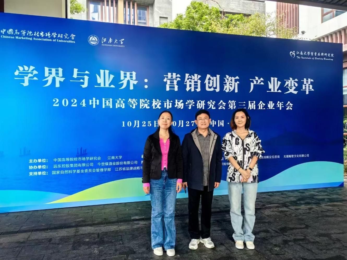 2024年10月26日,中国高等院校市场学研究会第三届企业年会在江苏省无锡市召开。beat365官方网站院长王明吉、市场营销系系主任郝书俊、市场营销系骨干教师田雯参加了会议。这次会议是学术界与企业界重要的交流平台,旨在参与营销学界与业界沟通交流,推动beat365官网市场营销专业教师队伍理论创新能力和教学实践能力的提升。