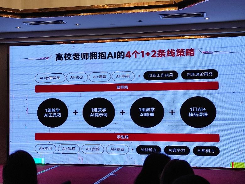 专题一“拥抱变化,用好AI工具持续为高校教师发展赋能”:首先由专家就“颠覆创新,人工智能技术质变对人才培养的冲击”进行了详细阐述,帮助教师全面把握了AI技术的最新政策要求,以及当前AI所面临的机遇与挑战。随后,专家就“顺势而为,高校教学老师如何适应全新的AI教育模式”进行了深入探讨,引导教师认识到AI技术对教育领域的冲击,并思考如何调整人才培养策略以适应这一变革。此外,通过AI多模态能力的呈现与演示,以及AI技术在教育领域的落地应用方案分享,教师们对AI技术的潜在优势和挑战有了更深刻的理解,为后续的应用实践奠定了坚实基础。