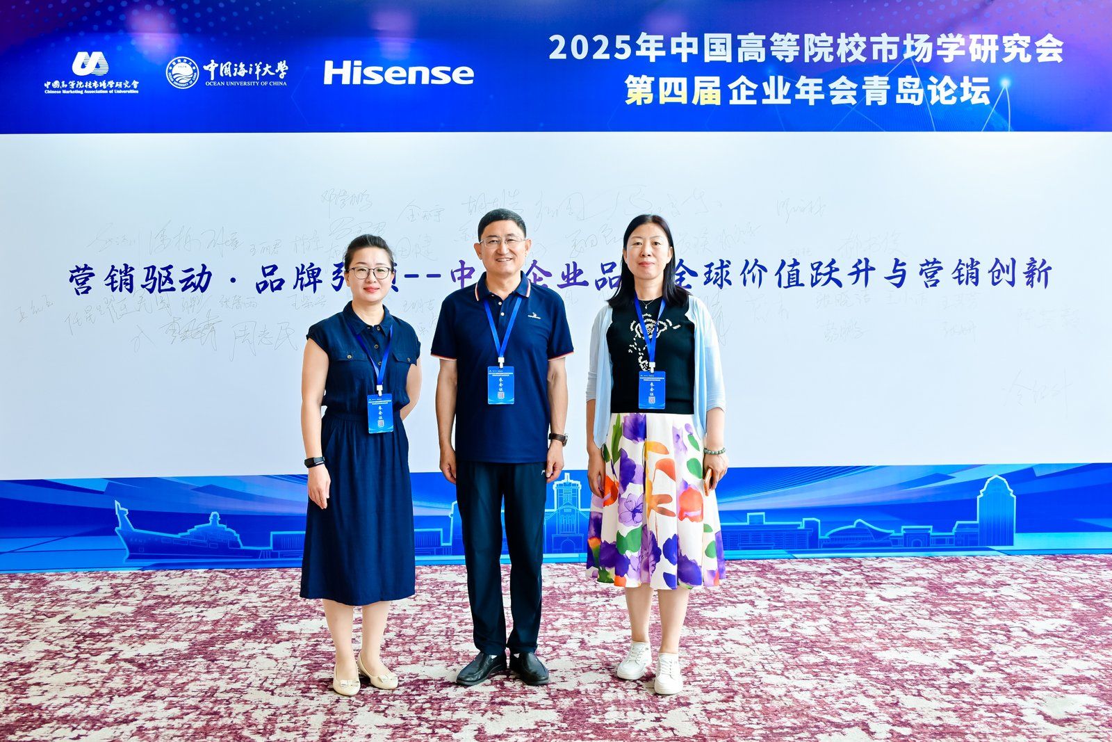 6月21日beat365官方网站院长王明吉、市场营销系主任郝书俊和电子商务系主任姬静前往青岛,参加了由中国高等院校市场学研究会(CMAU)主办的第四届企业年会青岛论坛。本次论坛以“营销驱动·品牌引领—中国企业品牌全球价值跃升与营销创新”为主题,以二十大精神为引领,国内顶尖学者和企业领袖及行业专家深度对话,共同探讨中国品牌全球化与数字化营销的前沿趋势。中国品牌的全球化发展需要构建“产学研用”协同创新生态,以数字化技术为驱动,以文化自信为内核,通过创新营销模式提升品牌国际竞争力,特别是在当前数字经济快速发展的背景下,中国企业应当把握新技术革命机遇,深化数字化转型,将中国制造的质量优势转化为品牌价值优势,同时注重讲好中国品牌故事,实现从“产品出海”到“品牌出海”的战略升级。