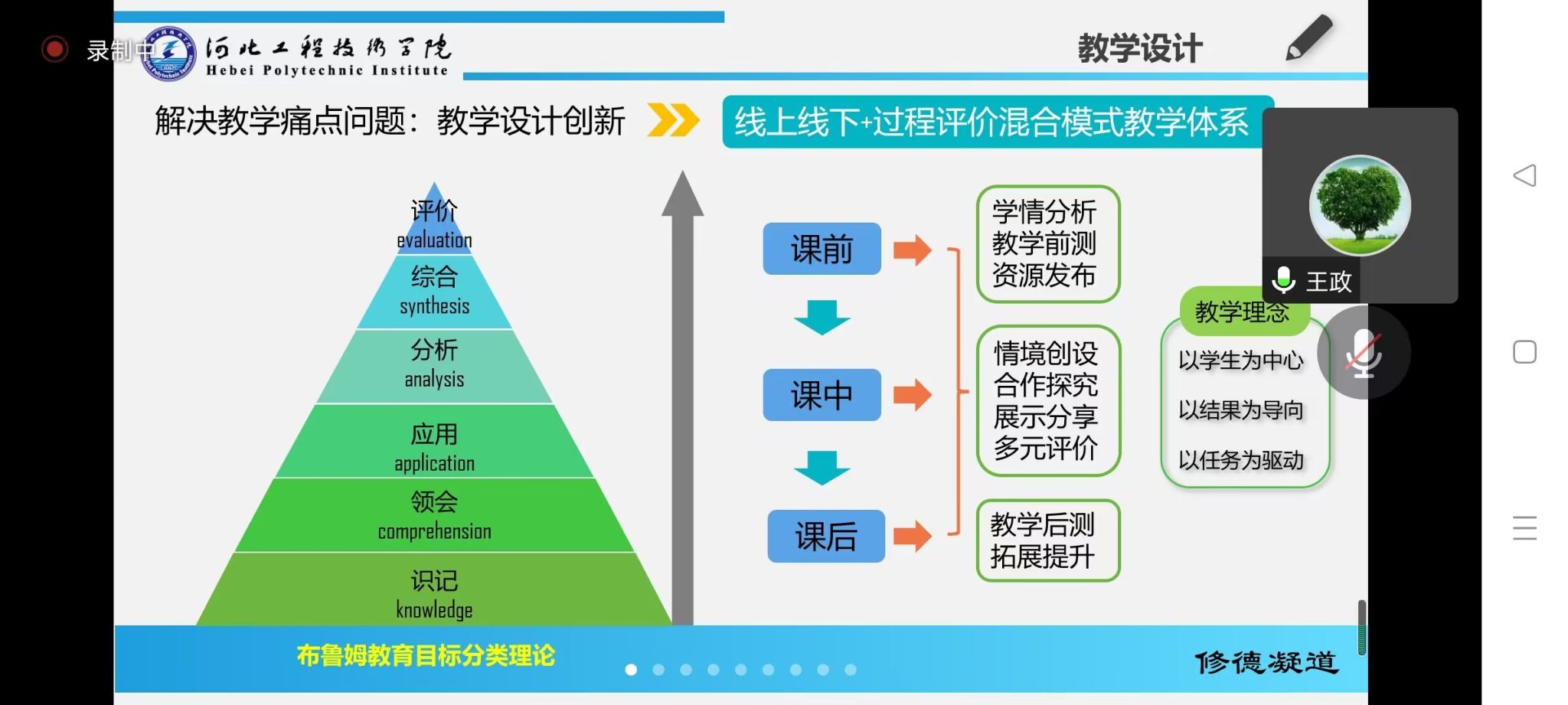 决赛由线上说课、创新教学成果汇报两部分组成。参赛教师们激情饱满,积极探索智慧教育新形态,运用先进的教学理念,优化教学目标,设计教学内容,创新教学方法,改革考核方式,充分展现了学院教师对待教育教学的热忱,以及专业的教育教学能力,获得了观摩教师们的肯定。