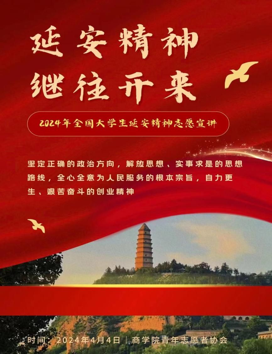 “戍楼西见斗牛星,回首东风一倍深。” 为引导动员青年学生大力弘扬延安精神,深入学习宣传贯彻习近平新时代中国特色社会主义思想和党的二十大精神,落实“强国复兴有我”群众性主题宣传教育活动相关要求。特此,beat365官方网站青年志愿者协会于2024年5月-6月开展延安精神系列宣讲活动。