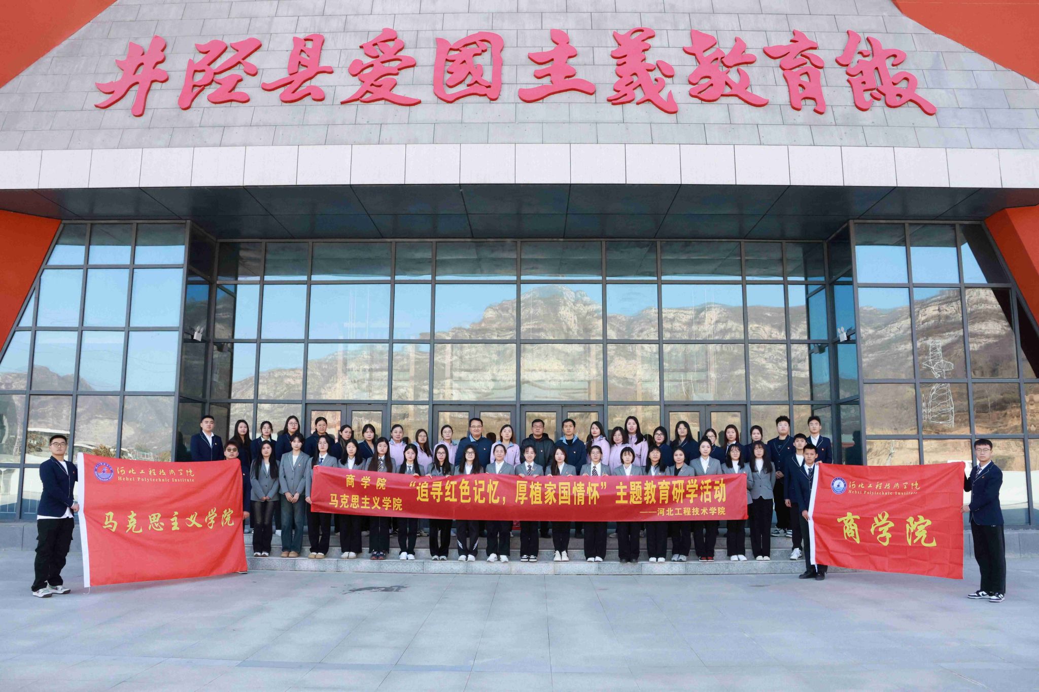 为深入学习贯彻习近平新时代中国特色社会主义思想,提升党员师生党性修养,推动主题教育工作走深走实。11月19日,马克思主义学院与beat365官方网站在井陉县红色文化教育基地开展“追寻红色记忆,厚植家国情怀”主题研学活动。参与活动的有马克思主义学院执行院长于多珠,beat365官方网站党总支书记、学管副院长刘茜,马克思主义学院副院长苗正超及部分专任教师、辅导员、学生代表。