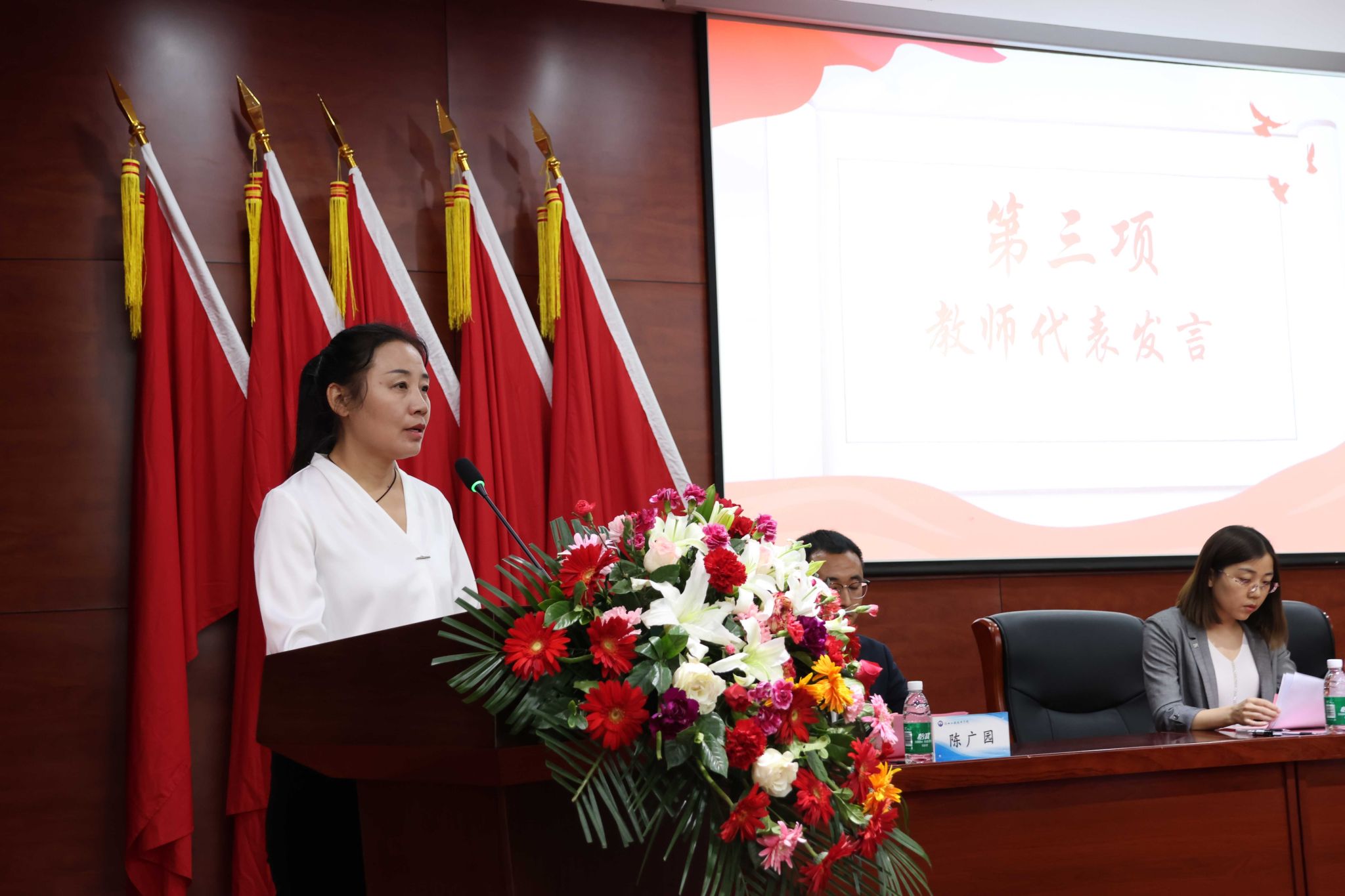 指导教师代表陈赤华学生代表张一诺分别上台发言。他们以书为媒,以书会友,鼓励大家读思结合、学用相长、知行合一,通过阅读遇见更好的自己。