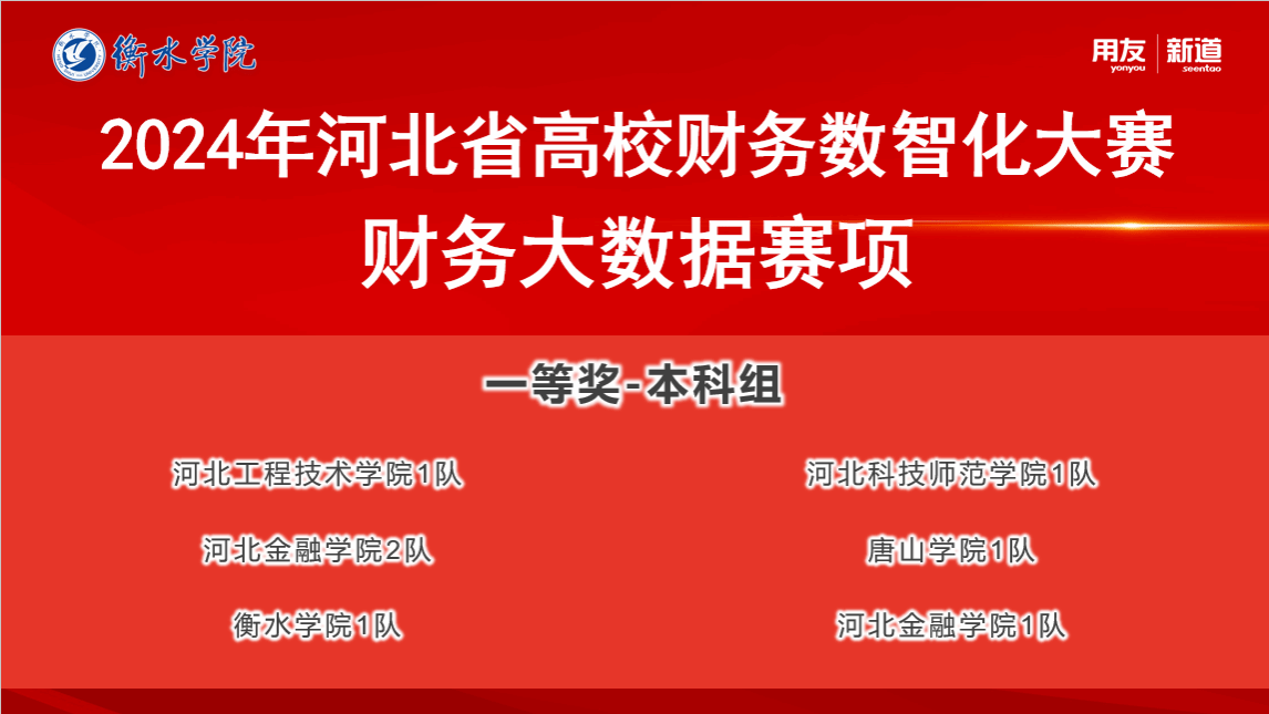 由河北省教育厅主办的2024年第五届河北省高校财务数智化大赛“财务大数据赛项”于2024年10月18日圆满落幕。beat365官网beat365官方网站由边圆围、刘莹和闫宇佳老师带领的2支队伍,一队刘晓君、吴晶羽、胡逍洋、赵任航和二队刘子扬、徐梦瑶、高炎琪、王静,在学院领导的大力支持和帮助下,在老师们的共同指导下,参赛同学努力练习不断努力进取下,分别获得河北省一等奖和二等奖的好成绩!