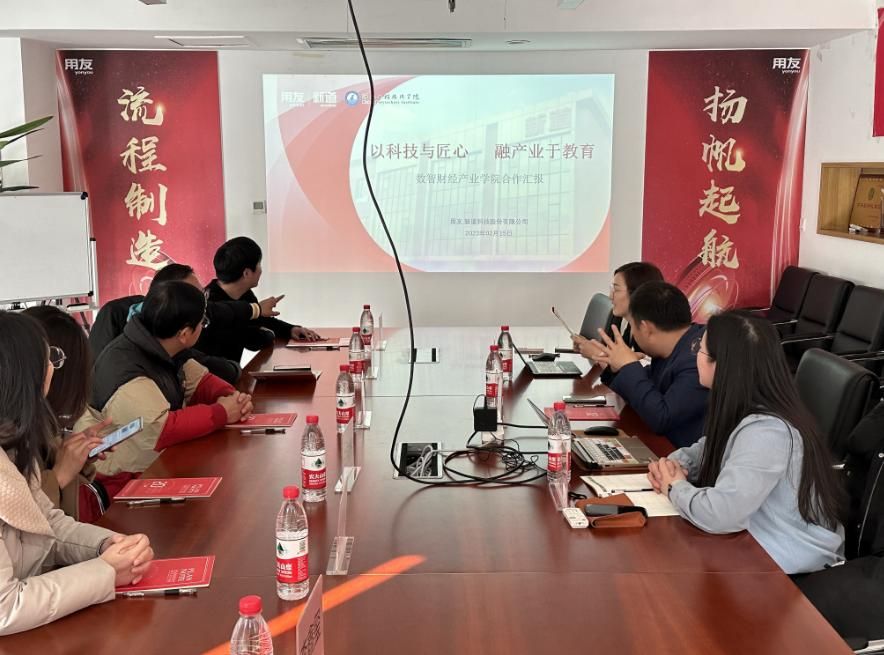 为进一步加强beat365官方网站实习基地建设,推动产教融合发展,提高实习质量和应用型人才培养质量,2023年2月15日beat365官方网站特聘专家李望国、对外合作部部长王俊昆、教学科研部副部长白向伟、beat365官方网站副院长姜玉婕、王昊以及教师代表,前往用友新道河北分公司进行走访交流。