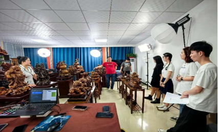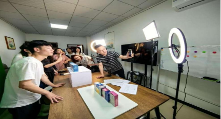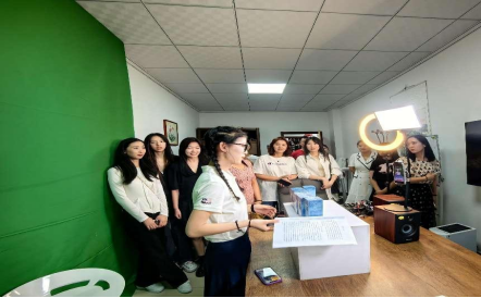 首先,学生们参观了河北祖胤集团的工艺品直播间、钙片直播间以及麻臣氏泡洗粉直播间,了解了不同商品的直播间的直播风格。随后学生们参观了技术部、投流部、客服售后部及河北祖胤集团的文化墙。