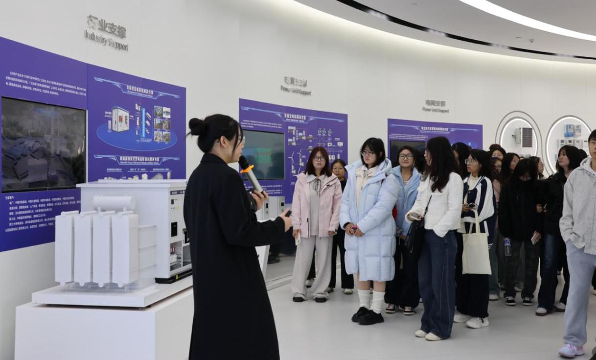 到达企业后在专业人员的带领下,先后参观了体验展厅、箱变事业部、品牌柜事业部、综自事业部等生产制造的各个环节。在企业体验展厅,技术总监则结合案例详解设备在智慧交通、工业互联等领域的应用场景,指尖划过设备接口时的专业讲解,让抽象的技术变得直观可感。参观过程中,公司工作人员为学生们开启了系统的讲解与引导。从企业的发展历程、核心业务布局,到行业发展趋势与市场竞争格局,工作人员的细致阐述让学生们对电气行业及企业运营逻辑有了宏观认知。同时,学生们看到了自动化生产线以及手工生产环节,直观感受到企业自动化生产的便捷性以及未来企业数字化转型的必要性。明白了工作能力的提升、工作质量的把控、时间管理的优化以及沟通能力的强化,都是未来职场发展的核心竞争力。