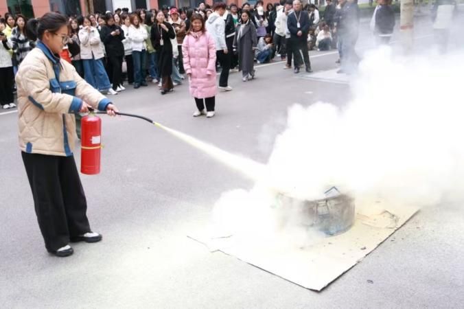 全体师生安全撤离至预定安全区域后,安全工作处安全管理中心主任梁航通老师以生动的实例为同学们深入浅出地阐释了应急疏散演练的关键要素,并对灭火器的使用技巧及注意事项进行了详尽的讲解和现场演示。为了进一步提升学生的操作能力,梁老师组织部分学生代表进行了现场操作实践。在宿舍区域的疏散演练中,梁老师和曾老师重点讲解了消火栓、防水袋、水枪的使用方法,并进行了现场操作演练,使学生们更深入地掌握了疏散逃生的技能,为构筑坚固的校园安全防线奠定了坚实的基础。