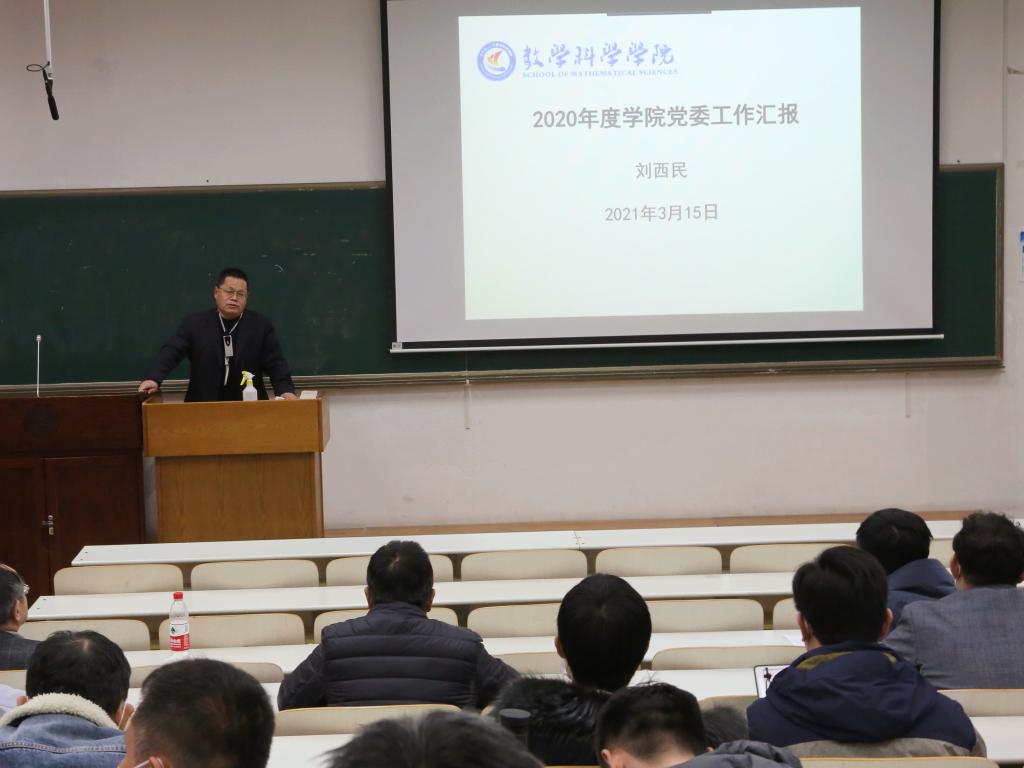 学院党委书记刘西民代表党委班子围绕贯彻落实习近平新时代中国特色社会主义思想、履行全面从严治党主体责任、意识形态和安全稳定、学院党建工作、民主集中制等等多个方面汇报了2020年党委工作;学院院长雷逢春代表行政班子从师资队伍建设、科研工作、人才培养、学科建设等等多个方面进行了回顾和总结。
