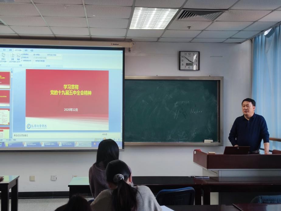 首先院党委副书记于化东老师为大家宣讲了党的十九届五中全会公报和《中共中央关于制定国民经济和社会发展第十四个五年规划和二〇三五年远景目标的建议》的要点,包括决胜全面建成小康社会取得的决定性成就、我国发展环境面临的深刻复杂变化、到2035年要实现的远景目标,“十四五”时期经济社会发展主要目标,实现奋斗目标的12方面具体举措等内容。同学们在为全面建成小康社会取得决定性成就而欣喜,为2035年要实现的远景目标而振奋的同时,深刻体会到“一代人有一代人的长征”这句话的内涵,大家平时都为论文、为工作而忙碌,不正是不想辜负这个时代吗?不正是想共同创造一个更美好的未来吗?