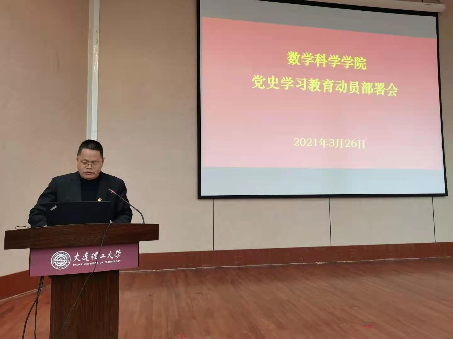 雷逢春就党史学习教育提三点要求。一是提高政治站位,确保组织到位,将开展党史学习教育作为学院全年重大的政治任务来完成;二是加强统筹协调和分类指导,确保所有人都能全身心投入学习,做到学有所思、学有所悟、学有所得,并将党史学习教育与为群众办实事解难题结合起来,确保党史学习教育见成效;三是突出大工和数学特色,将党史学习教育与大工优良办学传统和学校历史相结合,与学校及学院“十四五”规划相结合,与数学科学学院学科专业特色相结合,推动学院各项事业又快又好发展。