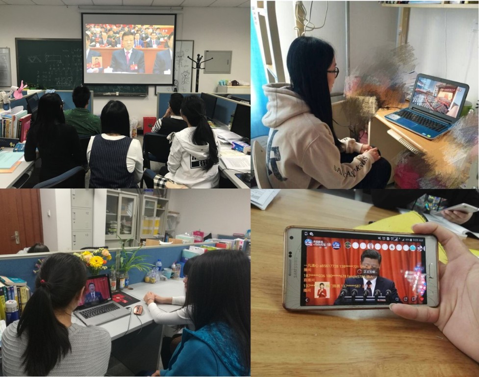2017年10月18日上午9时,中国共产党第十九次全国代表大会开幕会在人民大会堂隆重举行。学院党委组织校内全体师生党员分别在学院会议室、教研室、学生寝室等地进行了集中收看收听,组织在国外、校外党员利用新媒体自行观看学习,共同喜迎党的十九大胜利召开。