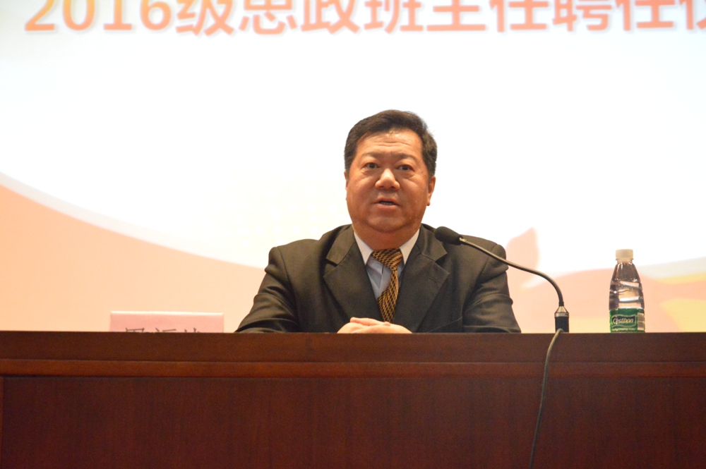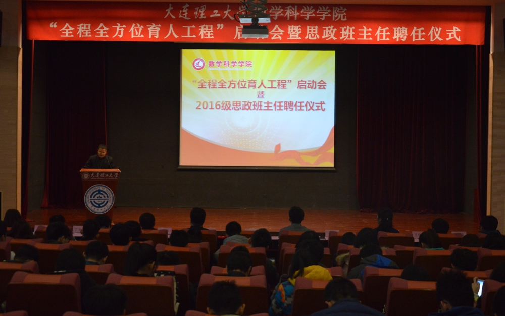 为深入贯彻全国高校思想政治工作会议精神和落实学校党委部署要求,12月21日下午,永利集团3044欢迎光临党委在百川报告厅举行“全程全方位育人工程”启动会暨2016级本科生思政班主任聘任仪式。校党委宣传部常务副部长、新闻中心主任、马克思主义学院党总支书记周福战、校团委书记陆凯、校学生工作处副处长顾丰、学院党委书记刘西民、学院副书记兼副院长孙壮与学院各位思政班主任、专业班主任和辅导员一同参加会议。会议由学院党委组织员兼学办主任冷鸿涛主持。