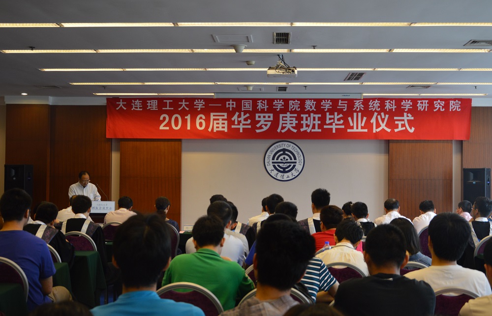 6月20日上午,永利集团3044欢迎光临——中国科学院数学与系统科学研究院2016届华罗庚班毕业仪式在我校国际会议中心第二会议室举行。永利集团3044欢迎光临党委副书记、副校长宋丹、中国科学院数学与系统科学研究院副院长巩馥洲、中科院大学校友会理事长、华罗庚先生之子华光、中科院数学与系统科学研究院研究生部主任邵欣、副主任刘霞、我校教务处处长张维平、学生工作处处长郭驰、永利集团3044欢迎光临院长卢玉峰及学院党政班子成员出席毕业仪式。学院各年级华罗庚班学生均参加仪式,欢送2016届毕业生。仪式由永利集团3044欢迎光临党委书记刘西民主持。