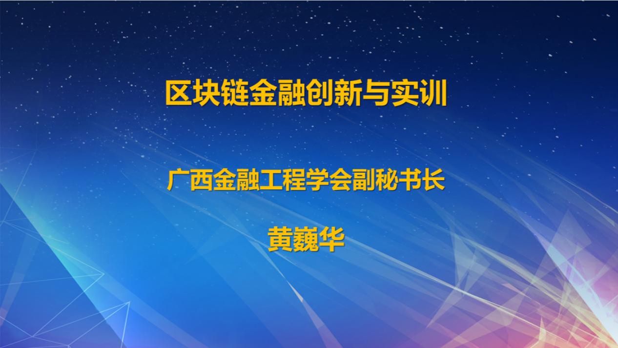 2022年12月27日至28日,广西金融工程学会副秘书长黄巍华老师为同学们带来了为期两天的《区块链金融创新与实训》课程。黄老师从区块链基础原理、建链与演练、区块链在银行中的应用、区块链的价值分析、区块链在证券中的应用等方面,带同学们全面了解了区块链的行业价值和使用场景。