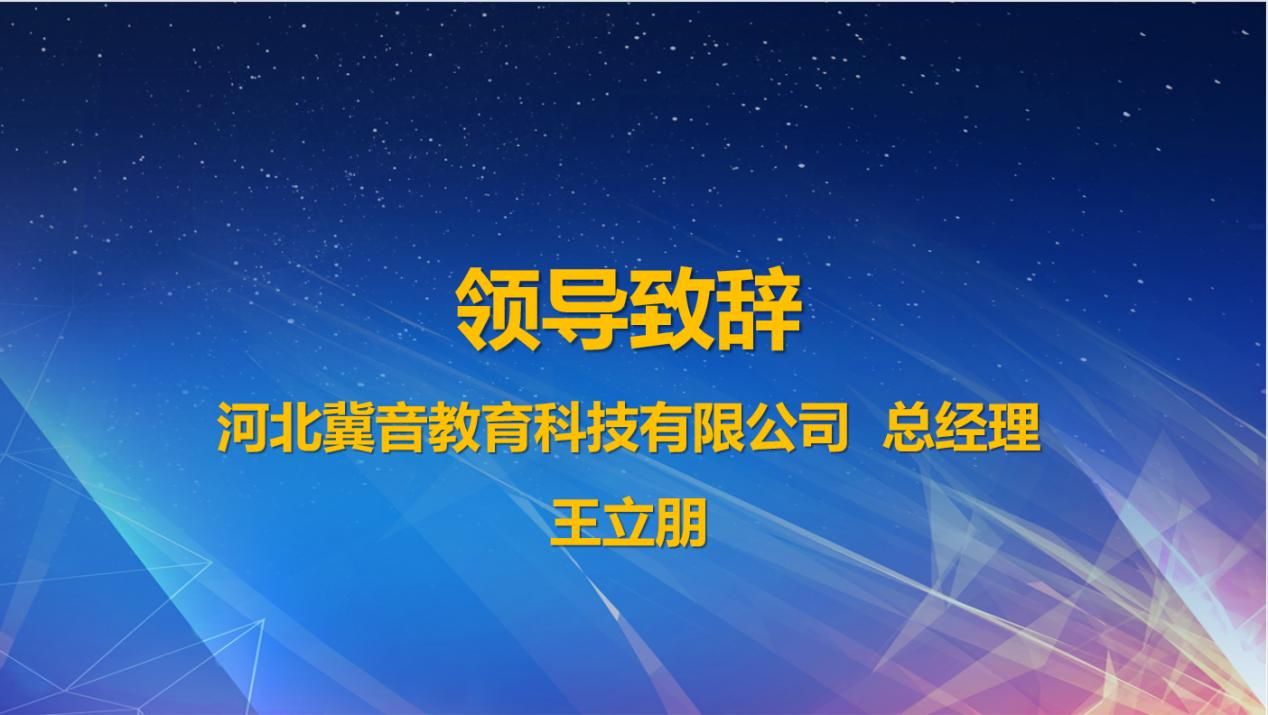 河北冀音教育科技有限公司王立朋总经理对莅临的各位领导、老师和参训的同学们表示感谢,并对进一步深化产教融合,推进校企双元育人,不断提升应用型本科院校人才培养质量提出新目标,希望通过搭建新型的产教融合模式,促进校企深度融合,赋能学生职场就业能力。