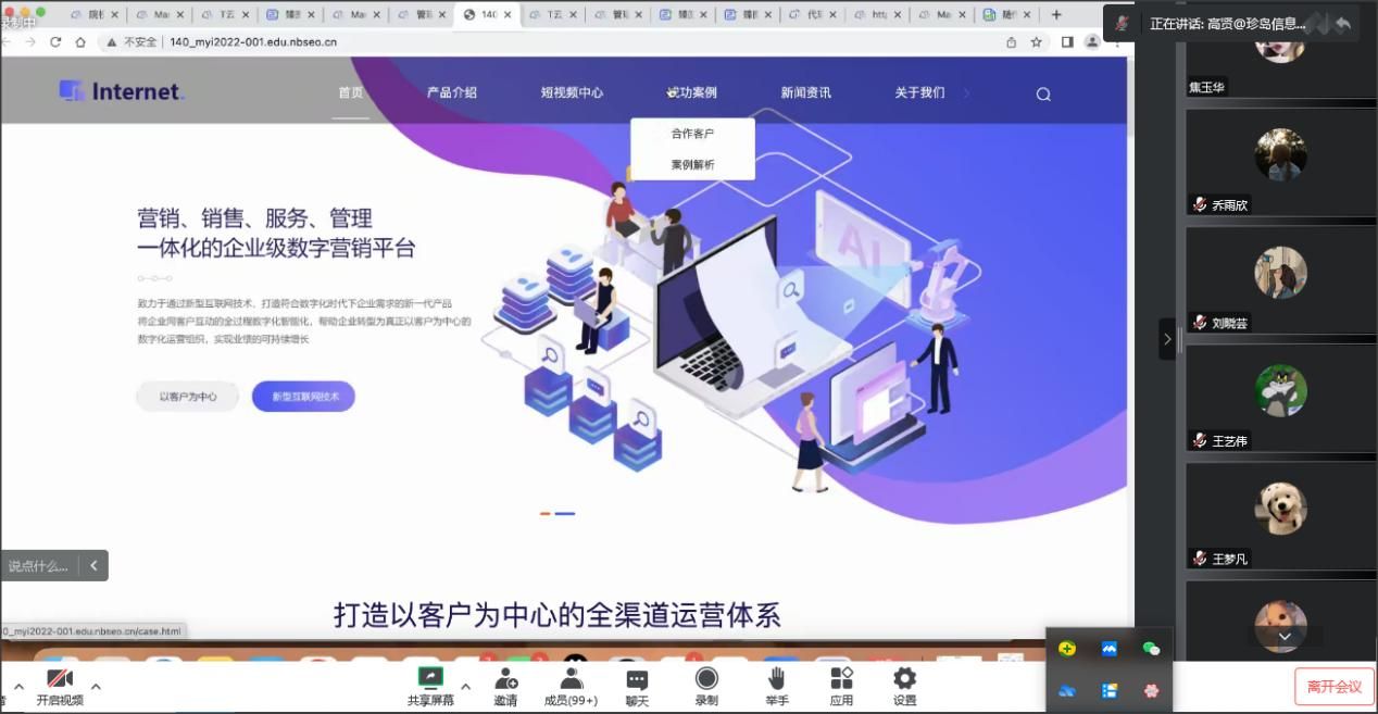 毕业实习始终是培养应用型经贸人才的重要手段,本次实习活动由学院与专注于提供智慧教学解决方案的珍岛信息技术有限公司携手共同打造。实习伊始,珍岛公司组建实习指导团队,从实习平台介绍、实习方式、实习内容和目标等方面为同学们详细地介绍,对学生们关心的问题进行一一解答;实习过程中珍岛公司特别邀请资深专业工程师和学生们分享智慧营销实务,以其亲身经历告诉同学们从事营销行业的实战经验和技能运用,同学们收获满满,并纷纷在交流群里发表感言。
