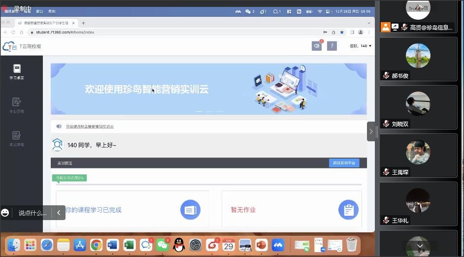 为了提高学生的综合实践能力和创新创业能力,提升学生的就业竞争力,打造市场营销专业特色,2022年12月28日---2023年1月4日beat365官方网站邀请了珍岛信息技术(上海)股份有限公司负责人高贤老师对2019级市场营销、2019级国际经济与贸易、2021级市场营销专接本、2021级国际经济与贸易专接本学生进行了智能营销项目实战培训。基于疫情影响,本次培训采用腾讯会议和软件实操的形式。
