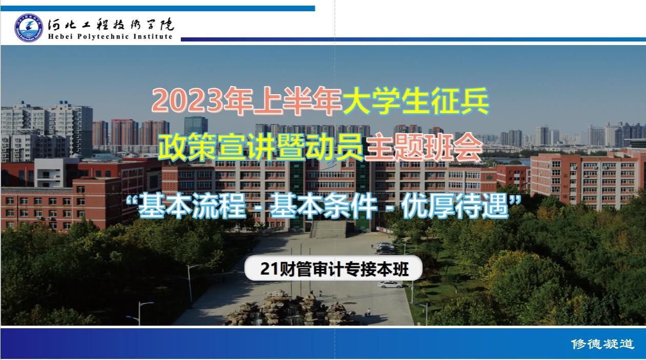 通过此次征兵宣传主题班会活动,同学们深入了解参军入伍的意义、优待政策、报名条件、应征流程;增强了对部队军事、科技素质现代化建设的认识。