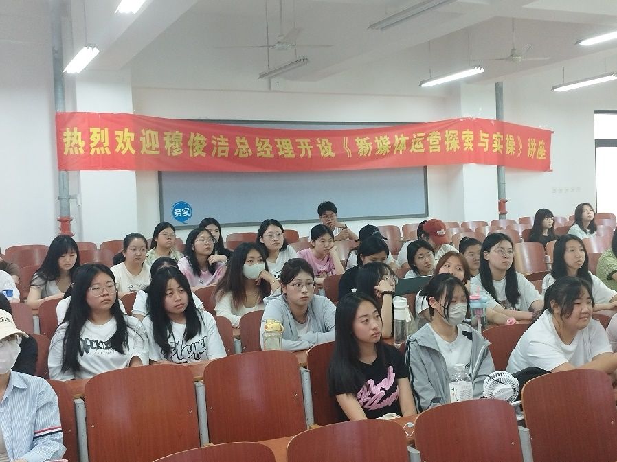 在讲座过程中,穆总经理详细询问同学们有没有在抖音上直播,有几位同学分享了自己直播经历。穆总经理现场跟大家分享自己工作所得,传授经验,并给大家解惑,如何增粉、如何卖货、如何运营等。同学们积极参与,气氛热烈。