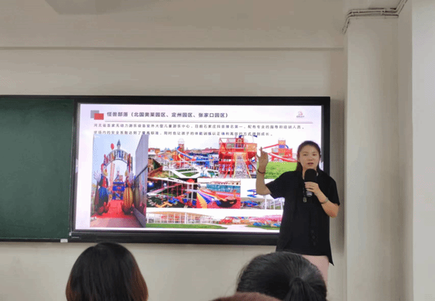 穆总经理从石家庄是一座火车拉来的城市入题,将同学们带入了此次学习交流之旅。穆总先给大家简单介绍了自己的个人经历,以及公司的过往成就和荣誉(河北省民促会秘书长单位、河北省广告协会理事单位等),然后详细为大家讲授了如何进行一站式新媒体运营服务,并为大家展示了公司目前正在操作的乡村振兴项目、城市娱乐设施推广项目等。