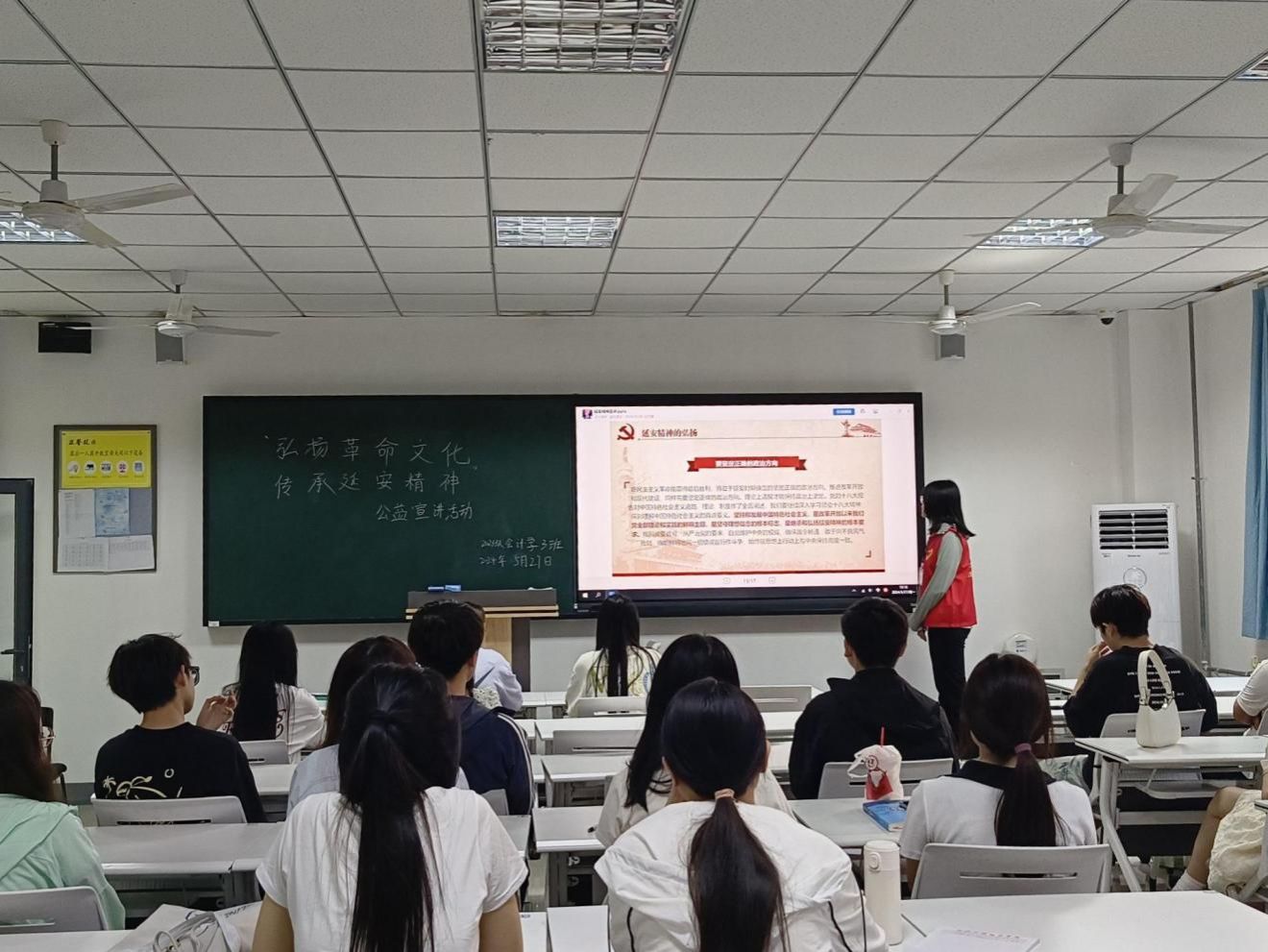 浓夏日长,蝉鸣荔熟。为了在生机盎然的夏日中弘扬革命文化,培育新青年社会主义核心价值观,为了增强学生的爱国主义情感和社会责任感,进而促进学生的全面发展。特此,beat365官方网站青年志愿者协会于2024年5月27日举办“弘扬革命文化,传承延安精神”走班宣讲活动。