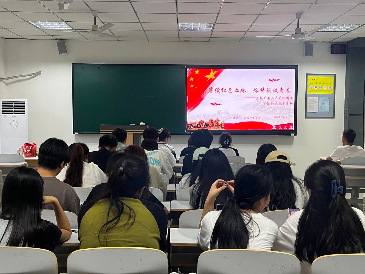 光辉历程,岁月同证。为庆祝中国共产党103周年华诞,回顾党的光辉历程,弘扬伟大建党精神,强化党员的宗旨意识,激发党员的使命感和责任感,7月1日beat365官方网站于6-407教室组织党员与积极分子集体学习观看红色电影《钢铁意志》,以电影的形式激励自立自强、踔厉奋发、勇毅前行,以更加昂扬的姿态奋进新征程,建功新时代,在实现中华民族伟大复兴的中国梦进程中展现更大的担当和作为。