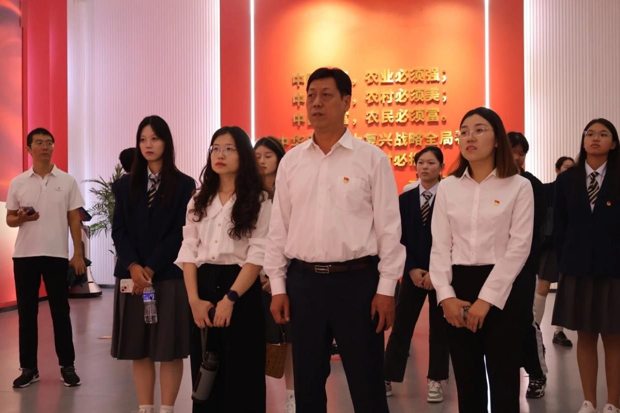 随后在讲解员的引领下,全体师生依次参观了塔元庄村文化长廊、村委会大厅、六位一体展馆、智慧农场、中国梦主题展馆等展区。走进正定塔元庄村史馆,观看习近平总书记多次到塔元庄村考察的珍贵历史照片,感悟总书记“我将无我、不负人民”的历史担当;聆听塔元庄村民在村党支部书记带领下艰苦奋斗、勤劳致富的感人故事,感受十八大以来塔元庄村发生的天翻地覆的变化。