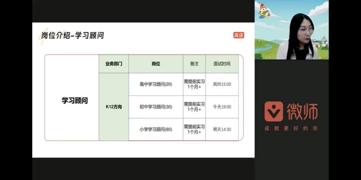 在数字化浪潮的推动下,高途上市公司开展本次线上招聘宣讲会。直播会议在公司的创立背景、行业发展、业务矩阵、岗位培训等多个方面向beat365官方网站毕业生详细介绍。此外,企业与beat365官方网站毕业生们通过线上直播的评论互动及现场连线等方式进行深入交流,使同学们能够更直观地了解岗位要求和企业文化,为此答疑解惑。