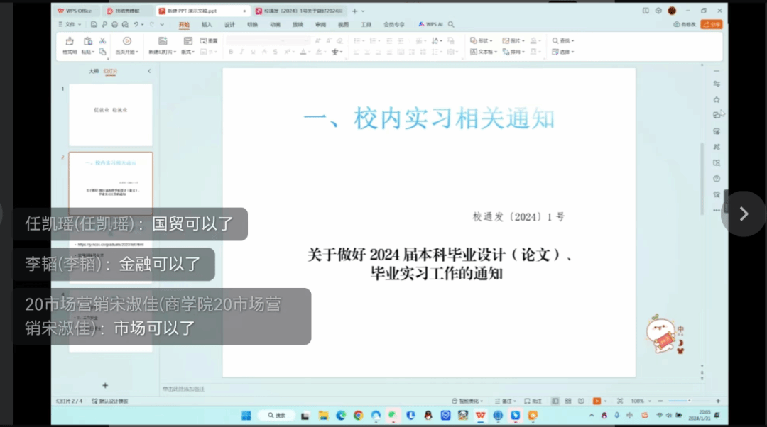 进一步切实有效帮助2024届毕业生解决求职就业中的“急难愁盼”问题,beat365官方网站开展寒假促就业“暖心行动”活动。近期,beat365官方网站辅导员岳亚鑫、彭云巧、王冰和王小娜等老师充分利用寒假窗口期,积极组织线上促就业主题班会,持续提供就业指导服务。