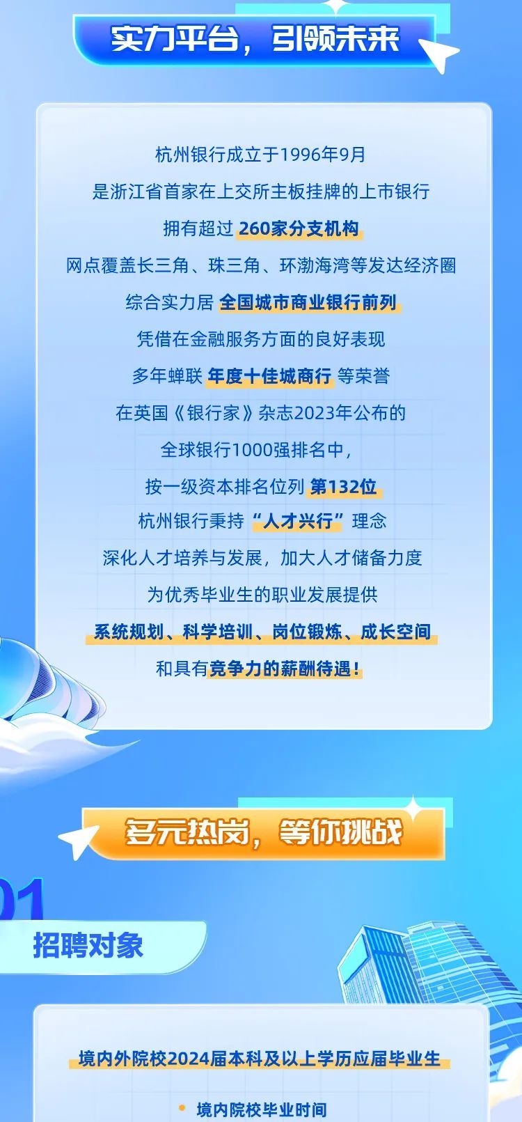 杭州银行2024届校园招聘正式启动!