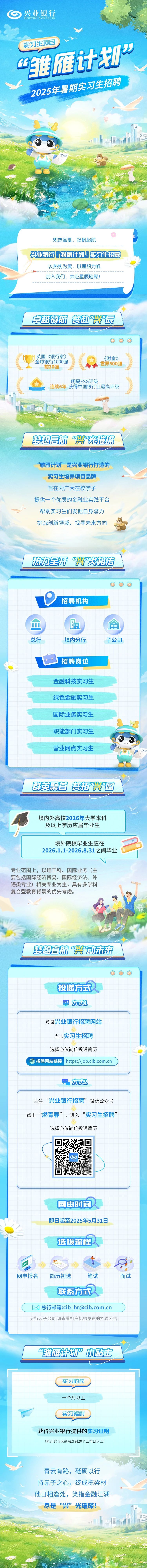 兴业银行2025年暑期实习生招聘正式启动!