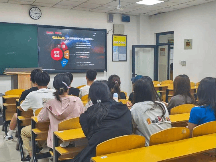 新道科技就业服务专家杨世强作为本次讲座的主讲老师,首先以当前复杂多变的就业环境为切入点,结合详实的行业数据,深入浅出地分析了2025年就业市场的新趋势、新特点,让同学们对就业形势有了更为清晰的认知。在“认识自我找到差距”环节,杨老师通过专业的职业测评工具和生动的案例,引导同学们深入剖析自身的性格特点、兴趣爱好、专业技能,帮助大家找准自身在就业市场中的定位,明确与目标岗位之间的差距,围绕“精准定位明确方向”,结合不同行业、企业的用人需求,为同学们分享了职业规划的方法和技巧,强调要将个人发展与行业趋势相结合,制定切实可行的职业目标。最后,从简历制作、面试技巧、职场适应等多个方面进行了细致讲解,选取了多个极具代表性的成功就业案例进行深入剖析,让同学们更加直观地感受到在求职过程中需要注意的要点和关键策略。