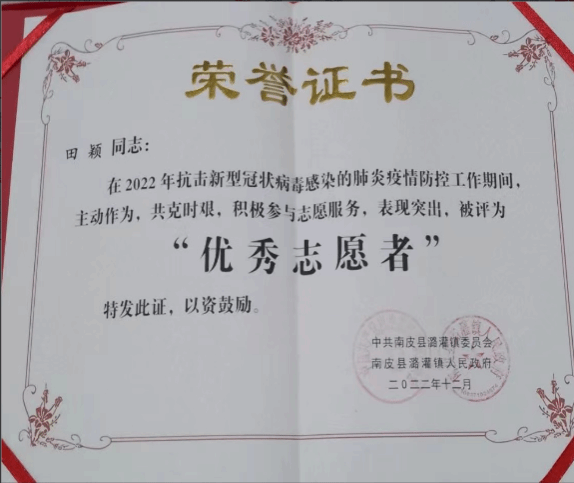 在学习和掌握本专业理论知识和应用技能的同时,还注意各方面知识的扩展,广泛的涉猎其他学科的知识,从而提高了自身的思想文化素质。在新冠疫情期间,不怕困难,敢于挑战。主动参与到学校及社区的核酸志愿服务中去,累计志愿时长达50h+,获得“优秀志愿者”称号。不断的丰富自己的阅历,锻炼坚强的意志品质,塑造健康人格,克服各种障碍困难。