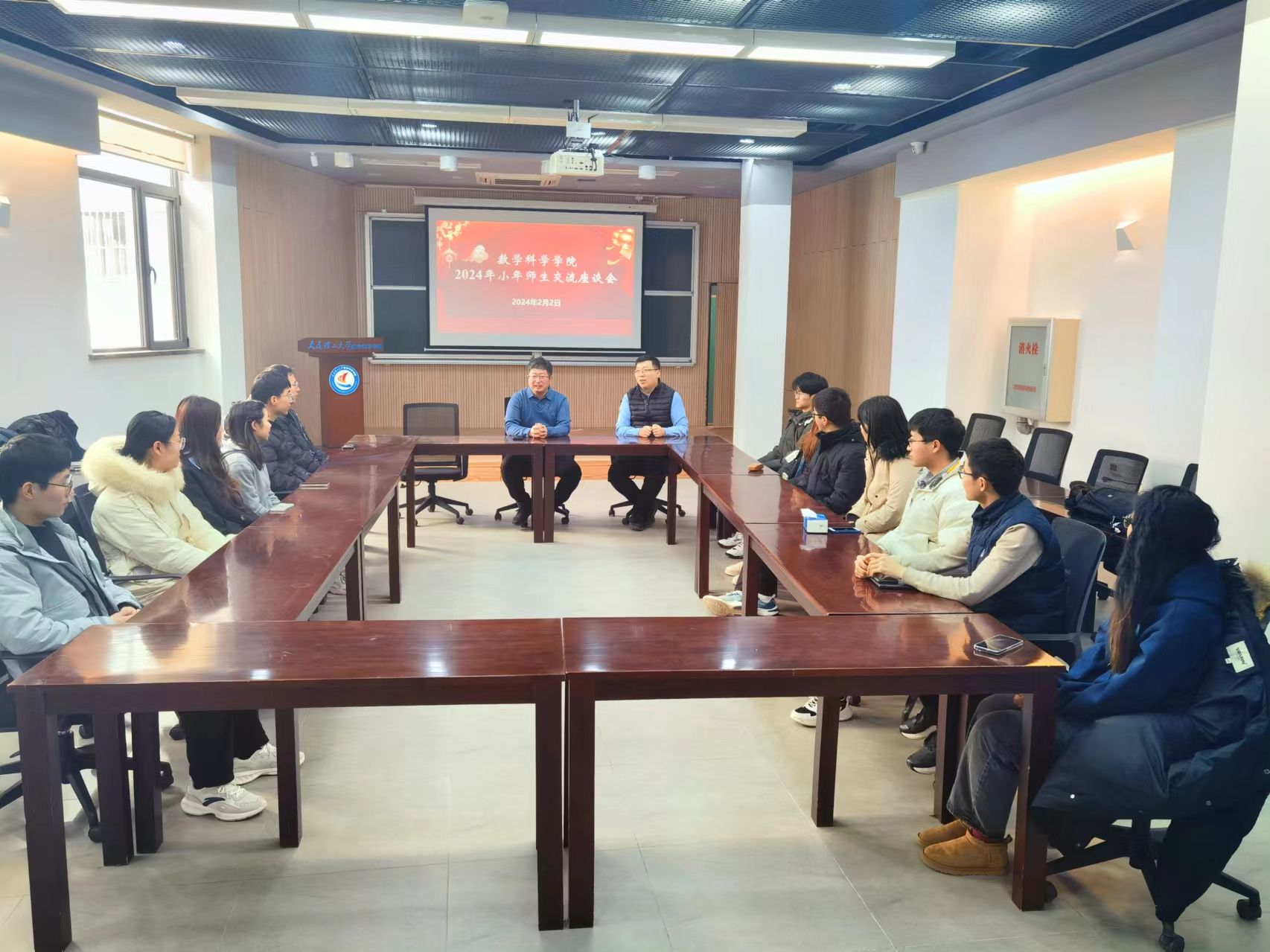 2024年2月2日,正值农历腊月廿三小年之际,学院在数学楼104会议室关怀慰问寒假留校学生。学院党委书记崔强、党委副书记兼副院长孙壮及学办主任刘颖与14名在校本研学生代表亲切交流,并送上新春祝福。