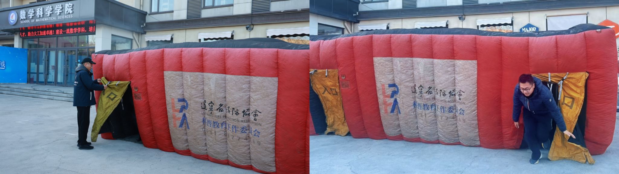 在随后的消防实操演练环节,师生们通过逃生烟雾帐篷模拟火场环境,学习并实践了火场避险和逃生技巧。通过亲身体验,参与者不仅加深了对火灾现场的感知,也增强了面对火灾时的应变能力,为校园安全提供了有力保障。