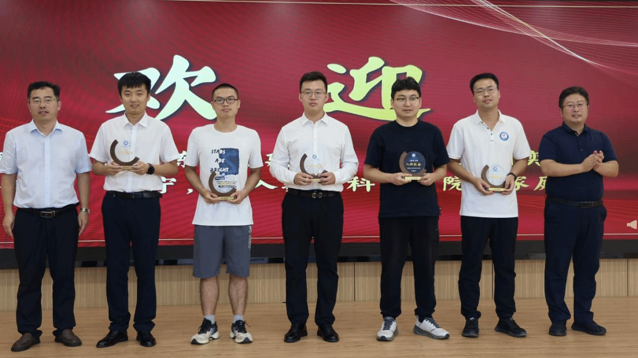 学院接着为新入职学院的教工举办了欢迎仪式,王国栋、毛建玺、苏远航、王宁、胡奕辰做为新教工代表依次登台,学院领导为新教工代表颁发了入职纪念杯并对他们表示热烈的欢迎和良好的祝愿。
