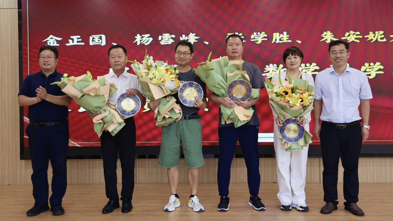 随后,学院为近两年退休的教职工举行庄重而温馨的荣休仪式,以表彰他们多年来对学院发展做出的贡献,金正国、杨雪峰、张学胜、朱安妮代表荣休教工出席仪式。
