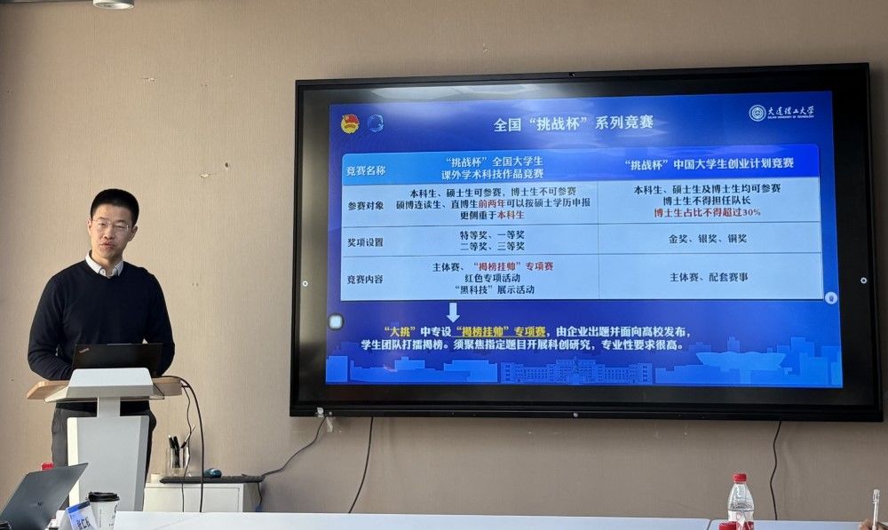 校团委副书记赵显嵩详细介绍了“挑战杯”全国大学生课外学术科技作品竞赛的基本情况和历年获奖作品分析,向与会师生介绍了“好项目”应该具备的条件、如何确定“好选题”,以及2025年的竞赛时间安排。