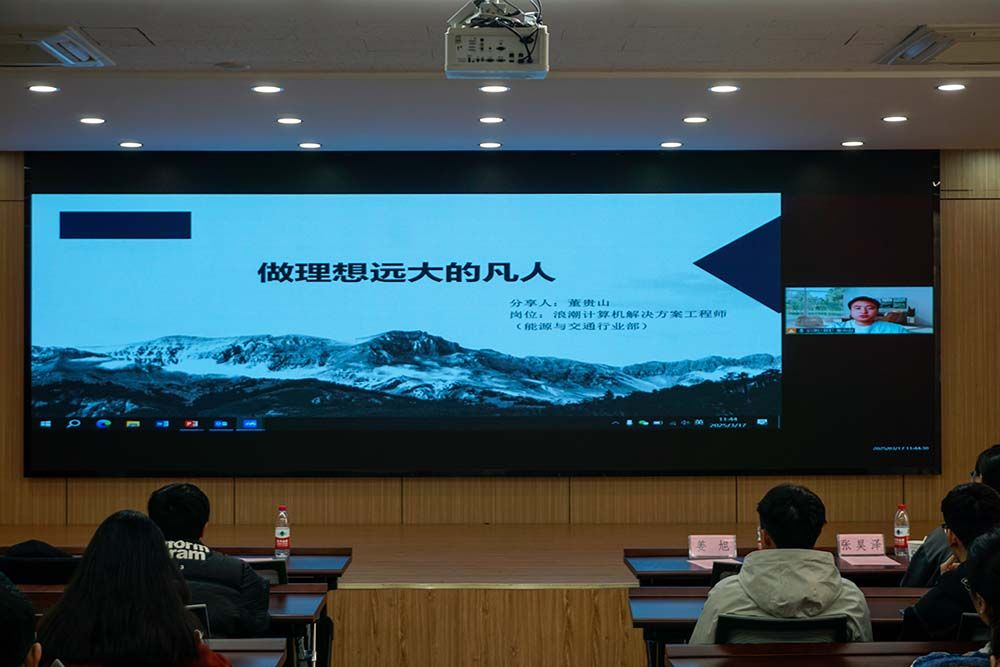 目前就职于浪潮集团有限公司,2020级校友董贵山以“做理想远大的凡人”为题,结合自己本科并不突出的特点,详细分享了自己的就业全过程。首先在求职方面建议同学们要先了解自己和岗位要求,并鼓励多投递,多尝试。接着就如何丰富简历和三类面试如何应对展开分享。最后董师兄建议同学们要终身学习,一定可以找到自己的方向。