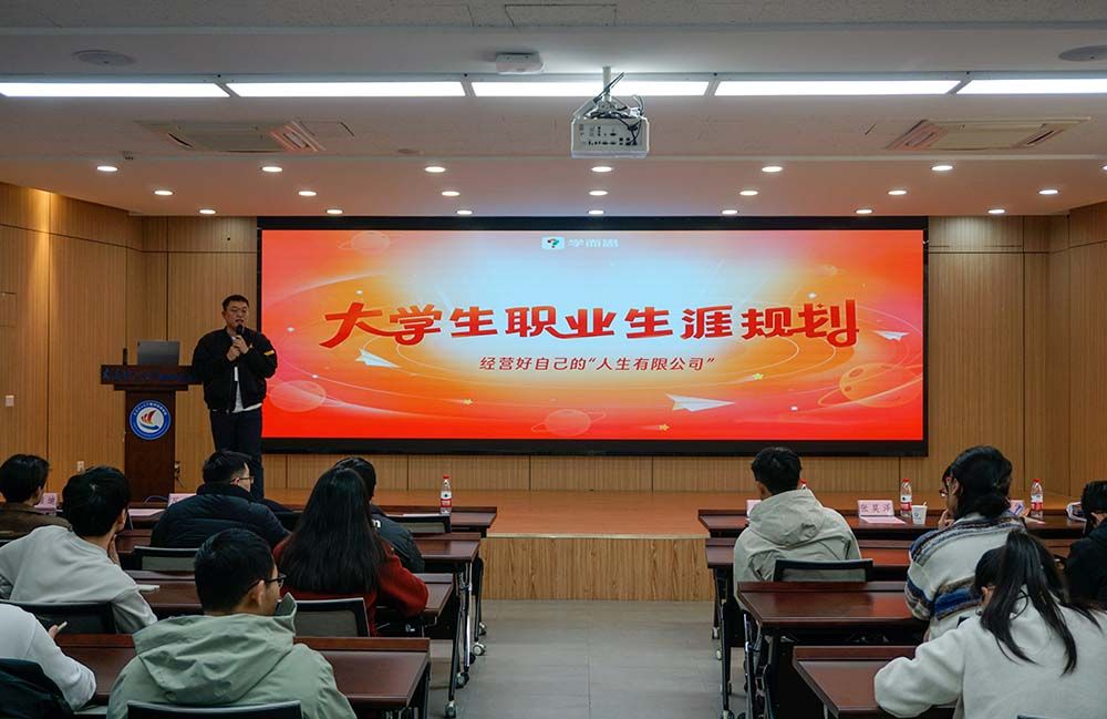 院党委书记崔强从自身求学经历出发,鼓励同学们在审时度势的基础上积极开拓生涯发展视角,建议树立由理性认知到权衡决策再到笃行不怠的思维模式,强调要把握人生关键时刻,在理性认知基础上寻找人生“最优解”。最后,鼓励同学们树立“大生涯观”,将个人发展融入社会发展背景与国家战略需求。