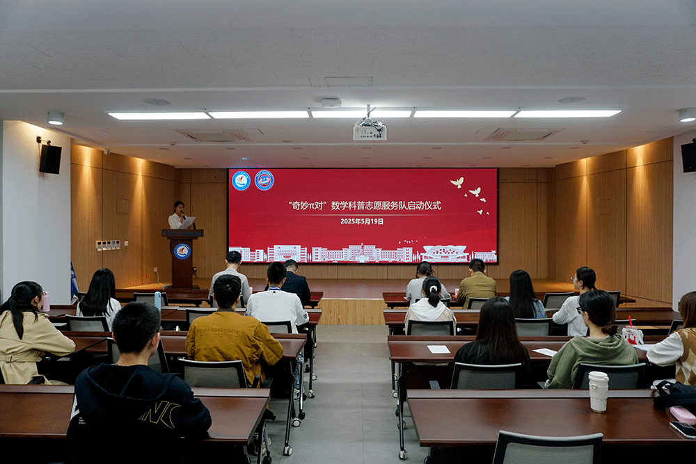 为响应国家“加强科学普及,提升全民素养”的号召,充分发挥高校学科优势服务社会,2025年5月19日,学院“奇妙π对”数学科普志愿服务队在数学楼115室举行。学院党委书记崔强、学生工作办公室主任刘颖、23级辅导员赵维祺、志愿服务队指导老师盛昳媛及志愿服务队全体成员、学生代表齐聚一堂,共同见证这一重要时刻。