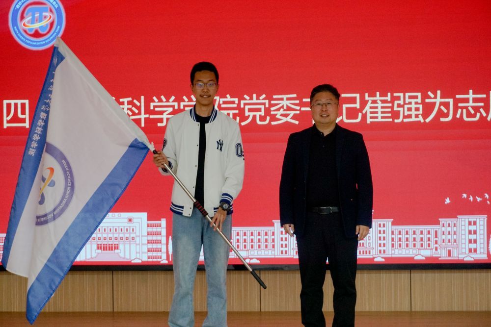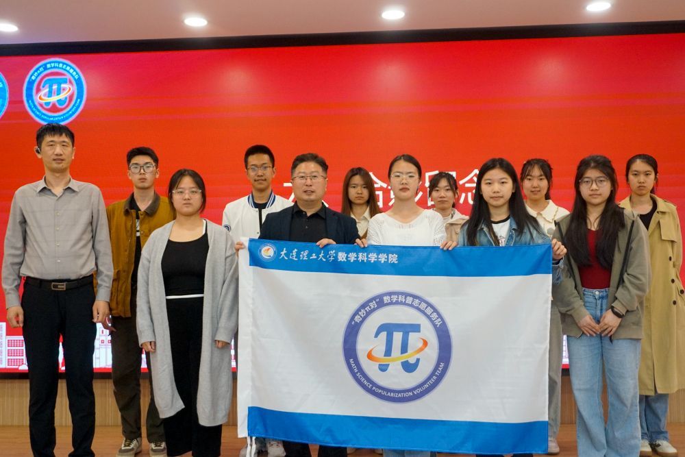 学院党委书记崔强为志愿服务队授旗并在致辞中高度肯定了服务队的创新意义,并寄语全队成员:“希望大家能够坚定信念,以‘π’的无限精神探索科普路径,将对于数学的兴趣埋在小学生的心灵中,为他们插上理想的翅膀,展翅翱翔,用数学智慧服务社会,展现大工学子的风采。”他强调,科普是一件非常有意义的事情,志愿服务更是高校育人的重要载体,学院将全力支持服务队建设。